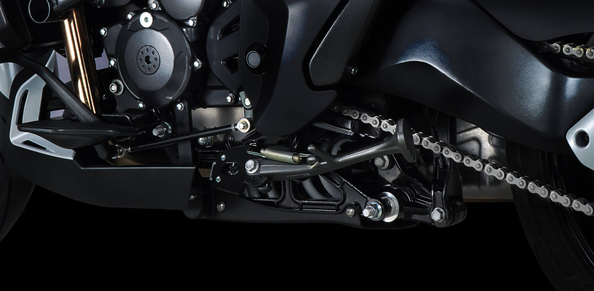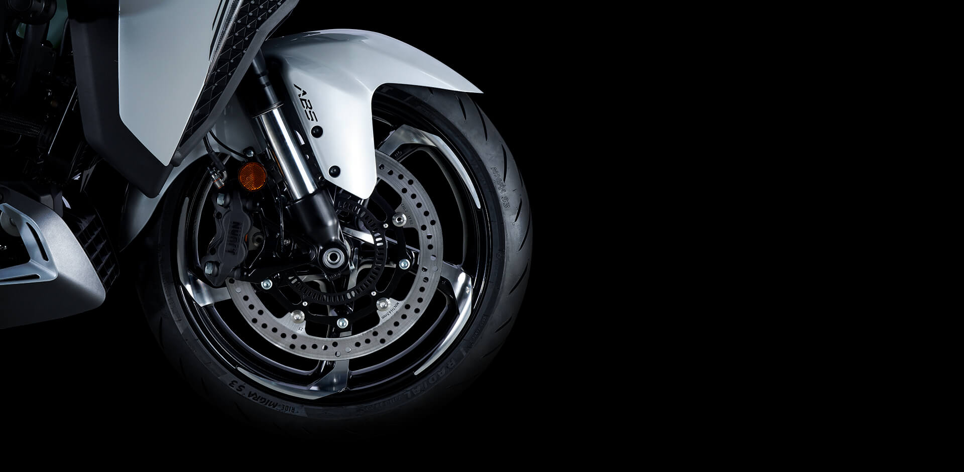 Колёса и подвеска. Мотоцикл оснащён литыми алюминиевыми дисками диаметром 17 дюймов. Для подвески спереди используется телескопическая вилка, а сзади установлен моноамортизатор.